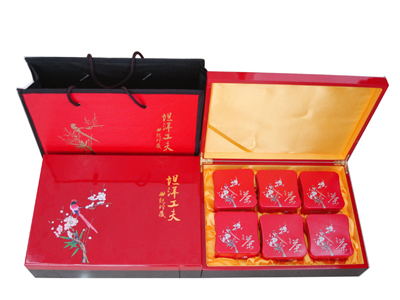 该款产品是我公司针对中**礼品市场开发的一款茶叶产品,整个产品包装大方,**,典雅,非常适合赠送一些重要的朋友和客人,主要以销售对象以中**为主。